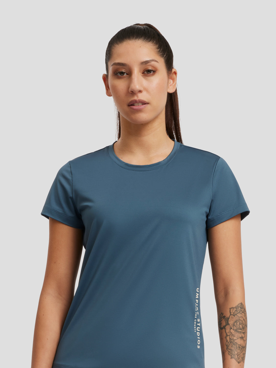 - Umpire Studios-logo linksonder op het T-shirt